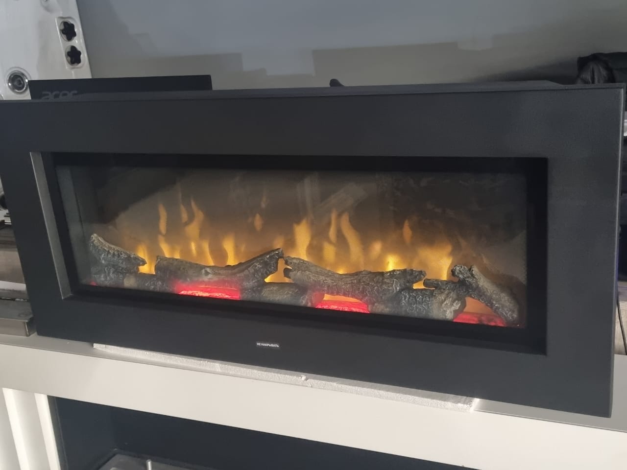 Дрова, находящиеся в очаге, создают эффект мерцания за счет встроенных в них светодиодов.