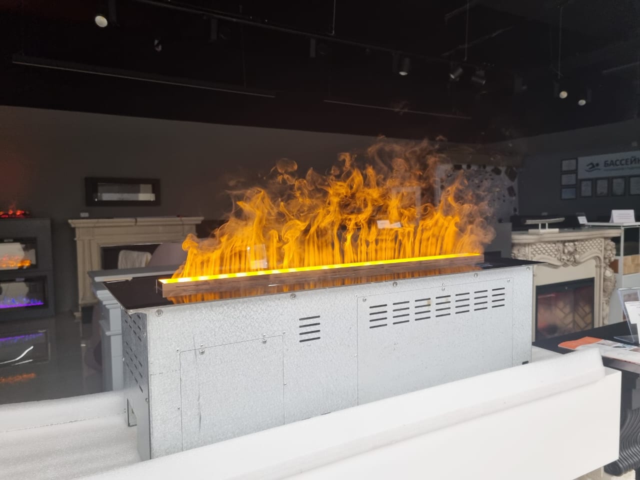 Поскольку камин работает на воде, то еще и дополнительно увлажняет воздух в помещении.