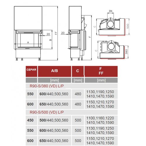 Каминная топка Kobok Corner 780 VD R90-S/500 L/P
