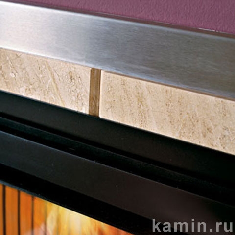 Обрамление из тигрового восточного мрамора со вставками из нержавеющей стали.