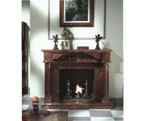 Этот классический пристенный камин изготовлен из мрамора необычного темно-коричневого цвета. Тонкие колонны с изысканной спиралевидной резьбой придают этой модели ощущение легкости и воздушности.